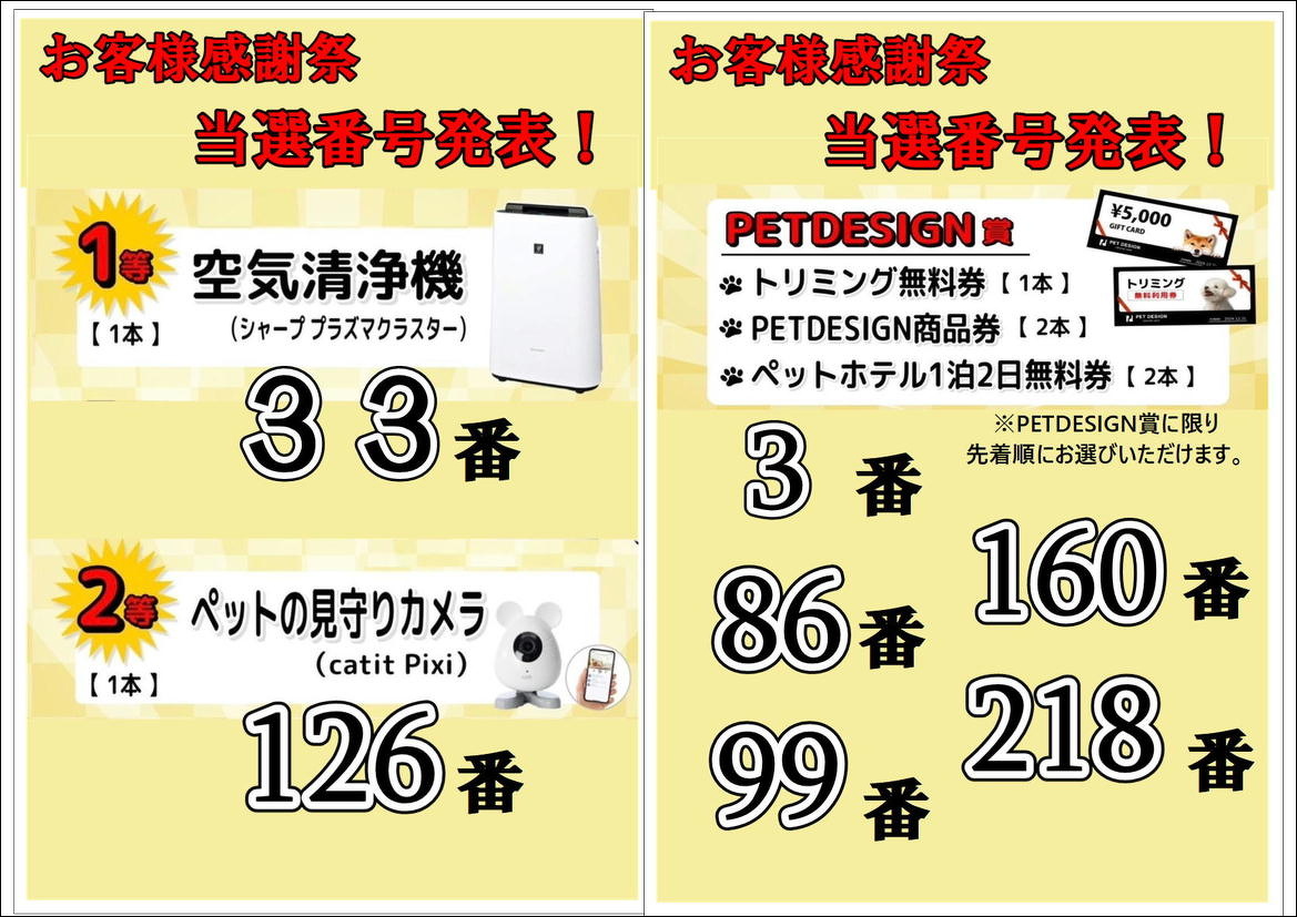 イベント開催中にお配りしておりました【抽選券】の当選者発表をいたします!
