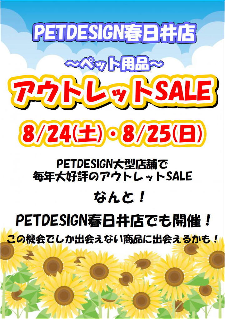 ペットデザイン大型店舗で行われている大人気アウトレットセールを春日井店でも開催いたします⭐️