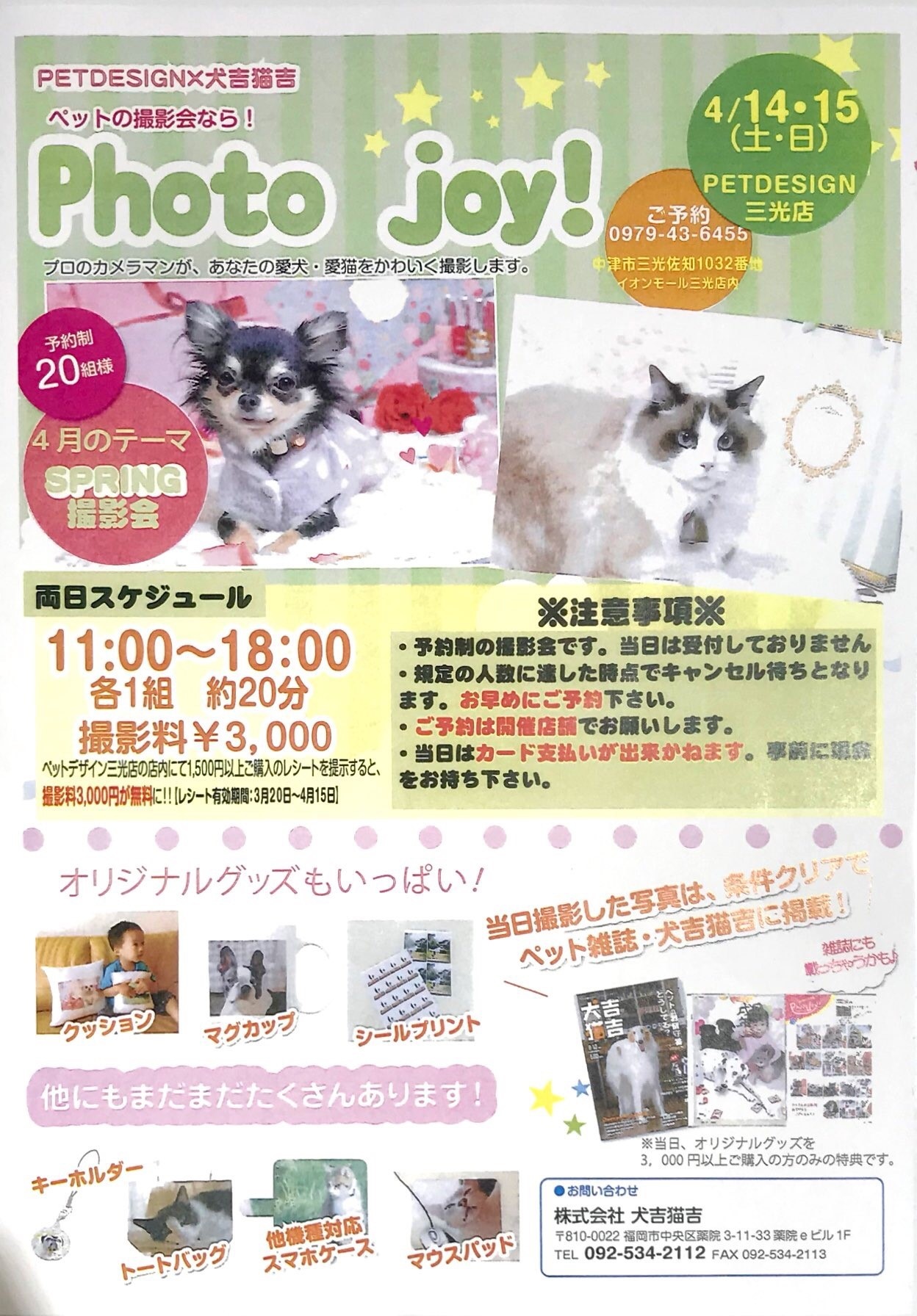 三光店 4月14・15日に撮影会を行います