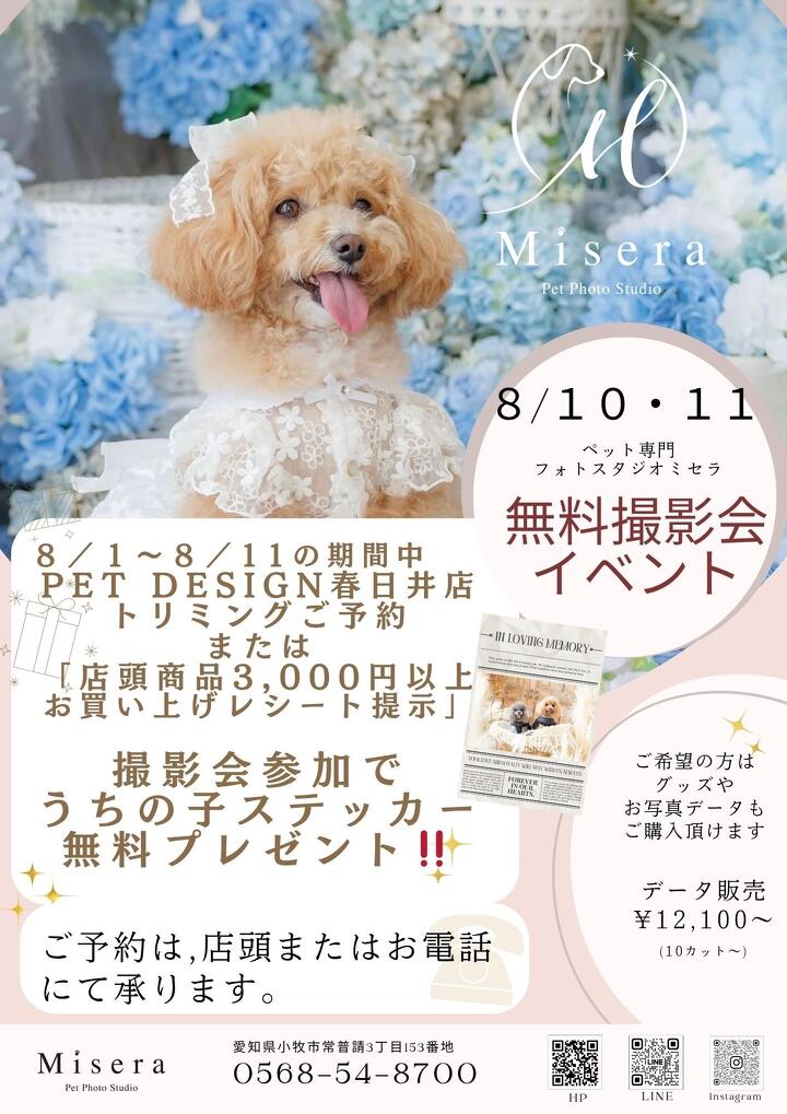 春日井店☆8月10日&11日 参加無料ペット撮影会のお知らせ