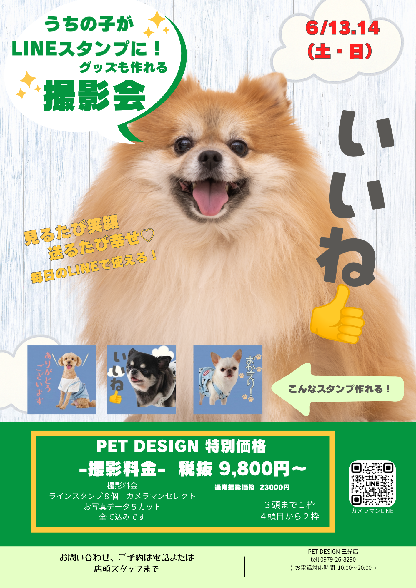 6.13(土)6.14(日)グッズ撮影会開催決定☆ご予約受付中 三光店 2026年04月27日 ツイート プロカメラマンによる撮影会が開催決定! 撮影頂いたお写真でLINEスタンプができます✨ +うちの子オリジナルグッズも作成可能♫ 詳しくは店頭スタッフまで! 撮影料金 9,800円(税抜)~ ☆ラインスタンプ8個(カメラマンセレクト) ☆お写真データ5カット 一覧へ戻る