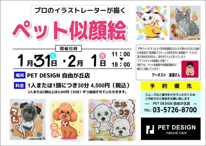 (似顔絵にしますわんちゃん・ねこちゃんのお名前はイベント日に確認いたします。)