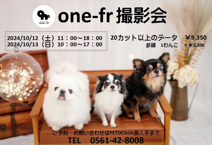 プロのカメラマン「one-fr(ワンフレ)」さんをお呼びし、ペット撮影会を開催いたします!