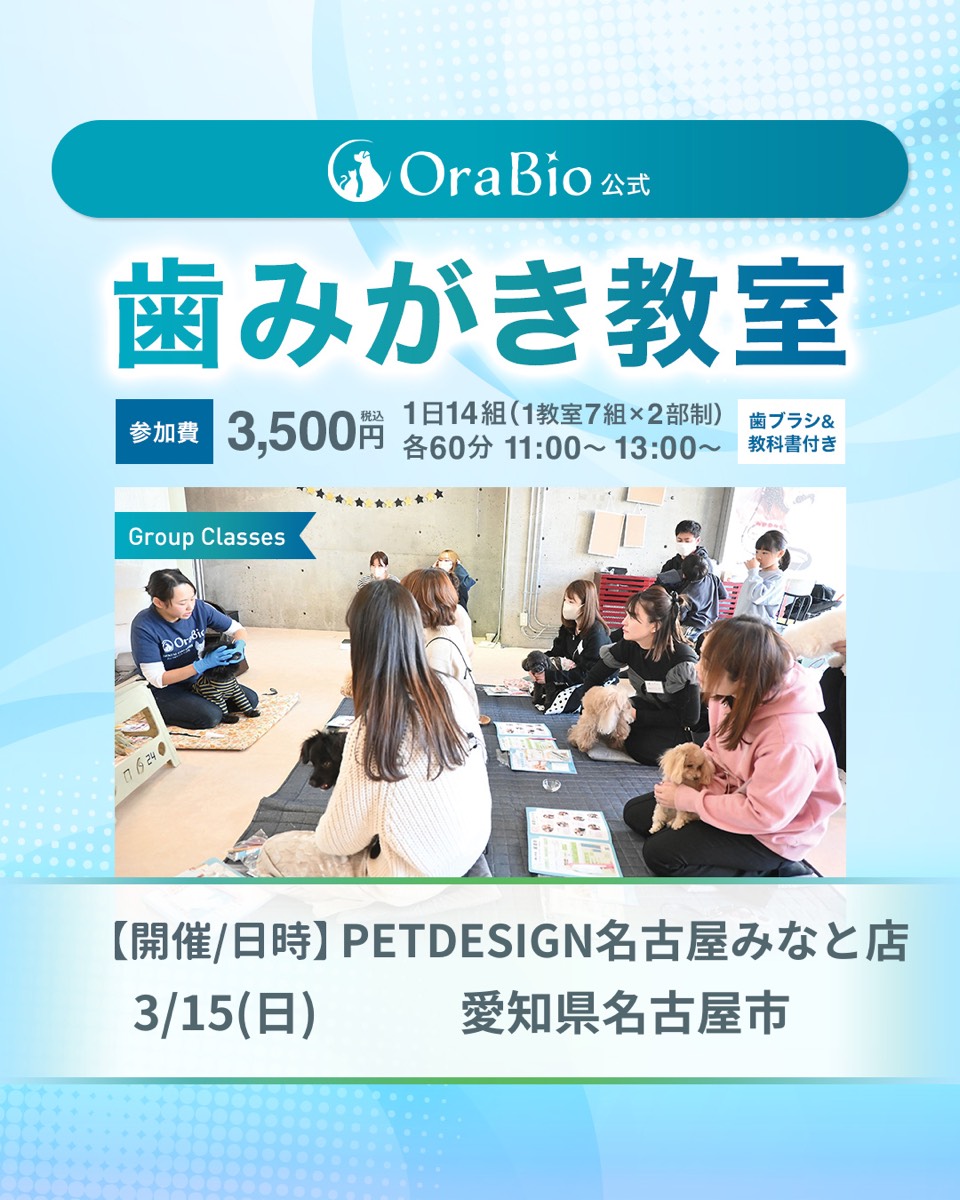 名古屋みなと店☆OraBio歯磨き教室3月15日予約枠残りわずかです☆ 2026年02月10日 ツイート PETDESIGN名古屋みなと店初開催 OraBio認定講師による 歯磨き教室 3月15日開催! 以前もお知らせいたしましたが、 残りあと2枠となりましたので再告知です♪ お早めにどうぞ~!! また、3月が満員となっても 次回5月4日の開催が決定しております☆ こちらもぜひご参加ください♪ 一覧へ戻る